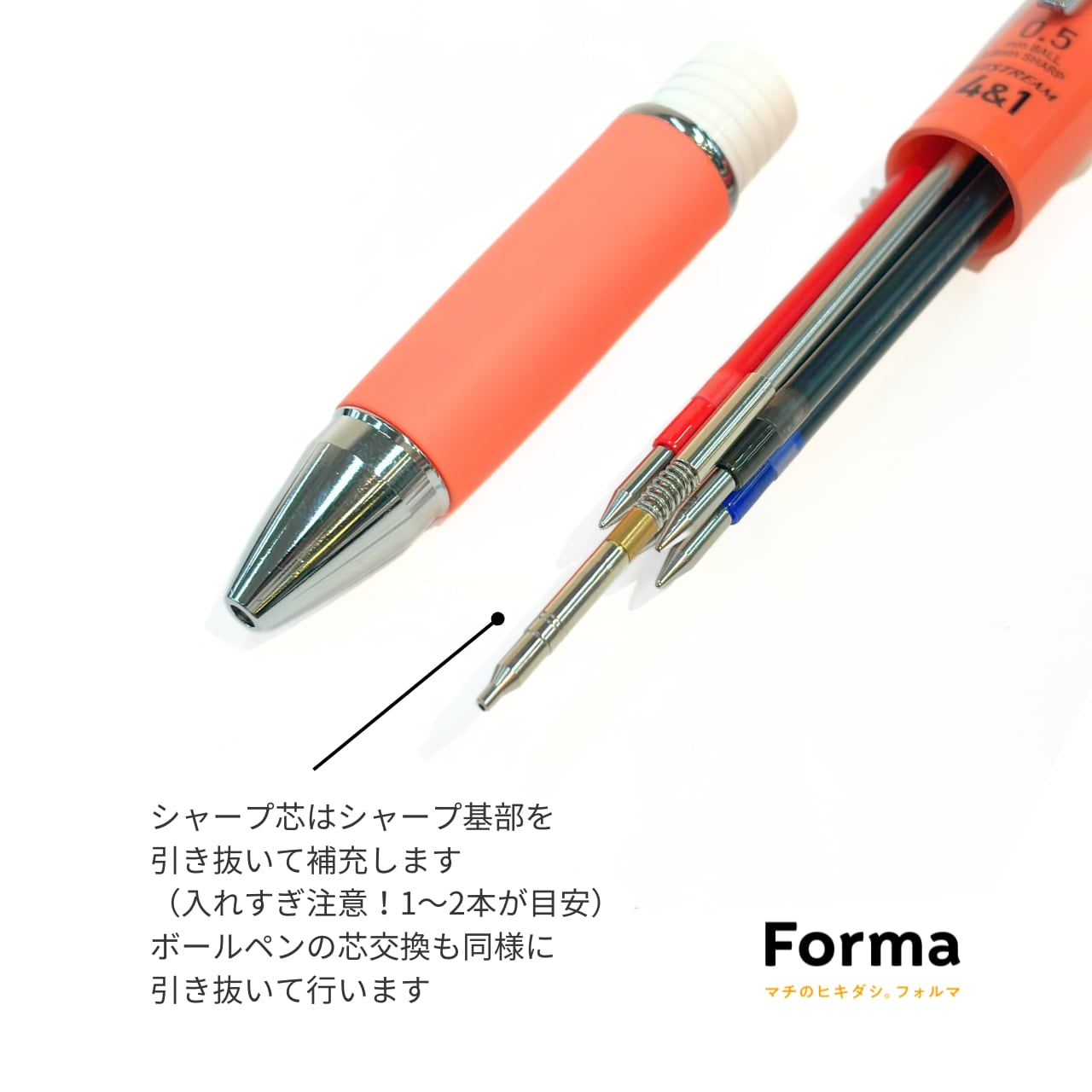 仕様:油性ボールペン4色(黒・赤・青・緑)+ペンシル0.5